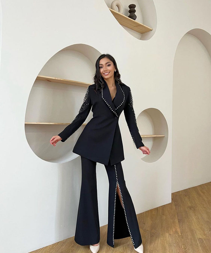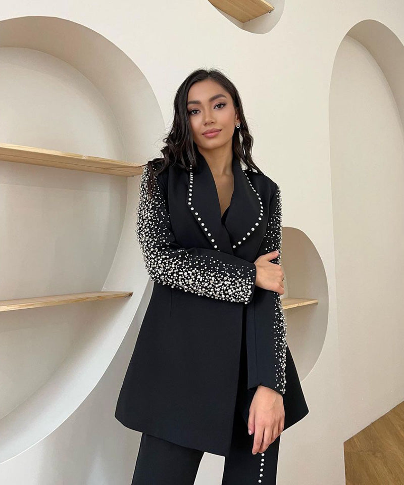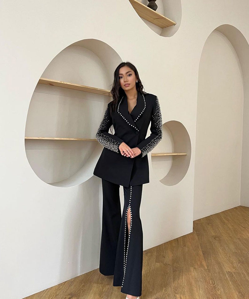 Georgette+ Motifz & stones Black