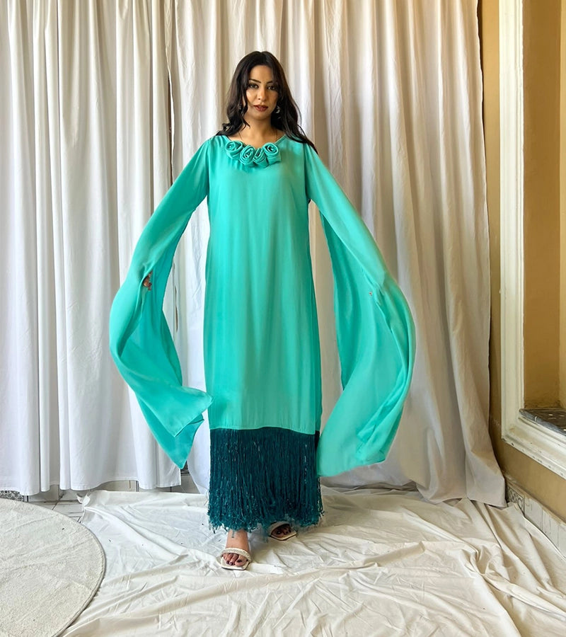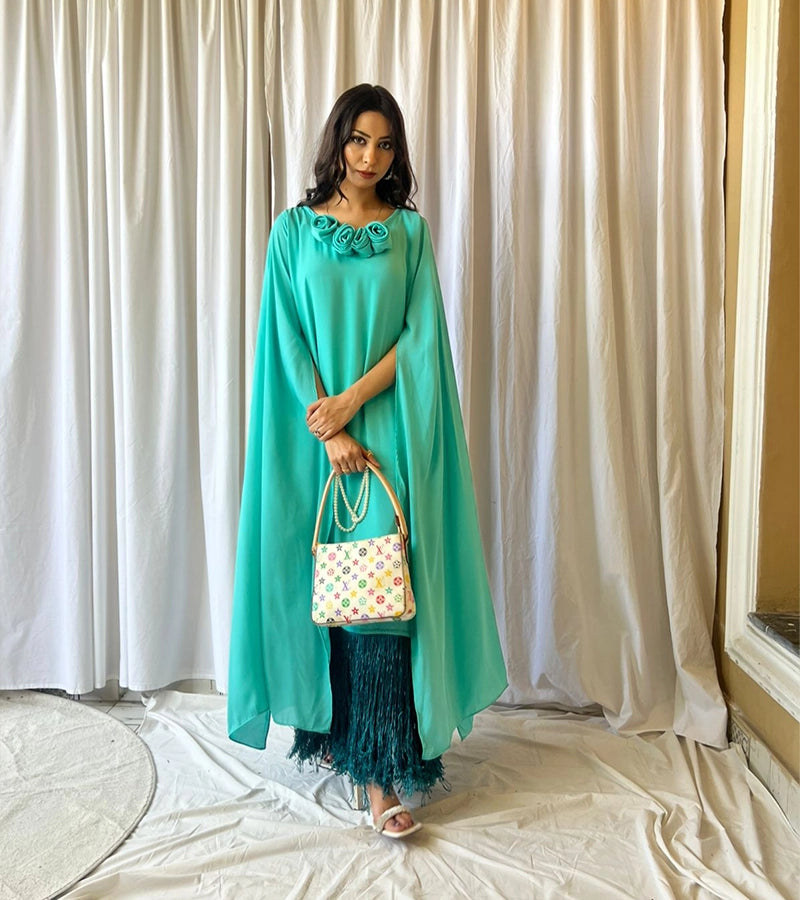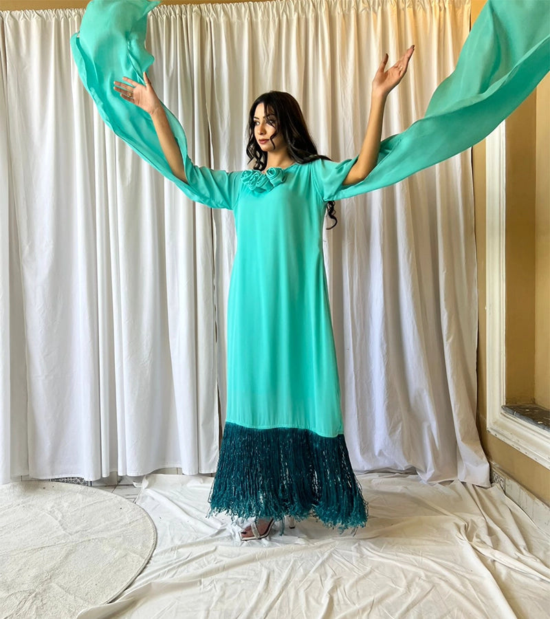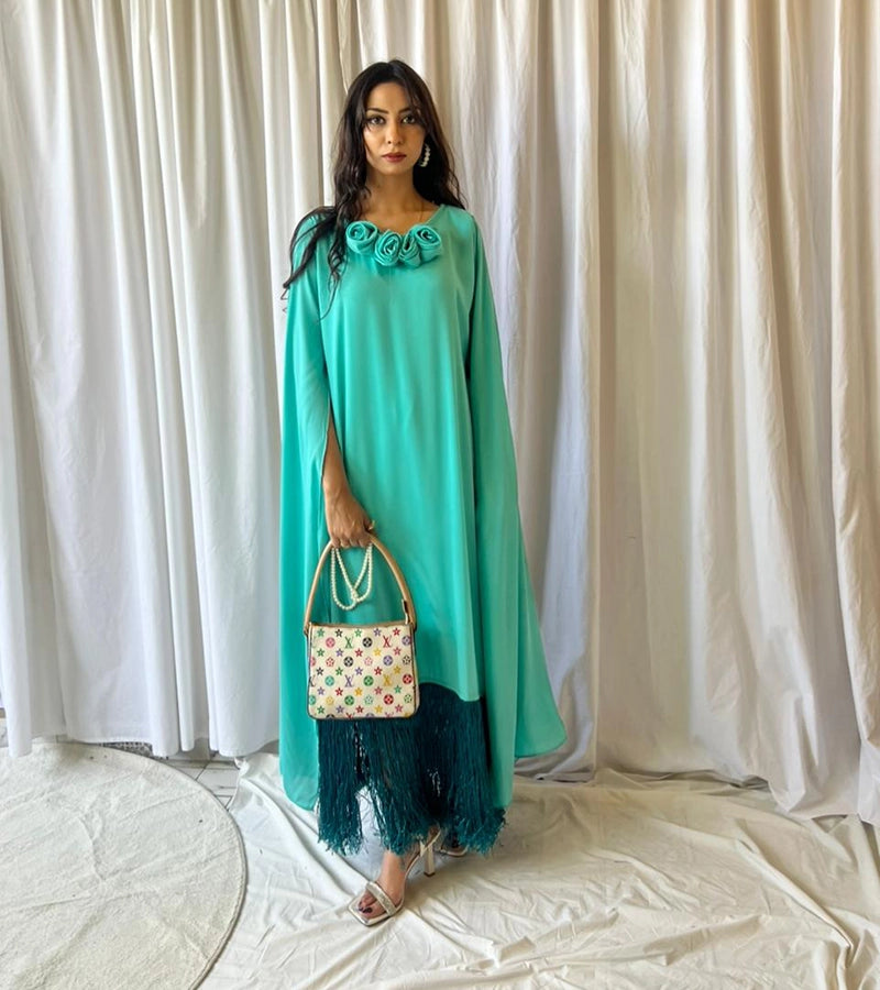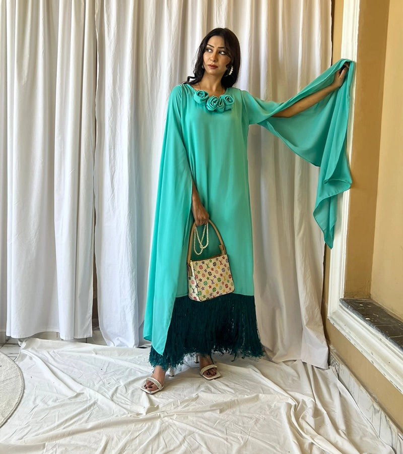 Fabric (georgette+fringes+flower details)